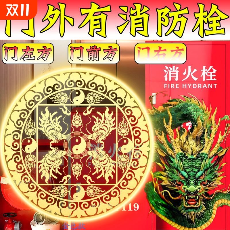 正品】解门外有消防栓水井管道问题金色青龙镇护家宅女生礼品贴