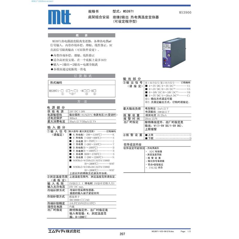 热销ms3971-k-v1热电阻温度变换器原厂应原厂规格货另议期