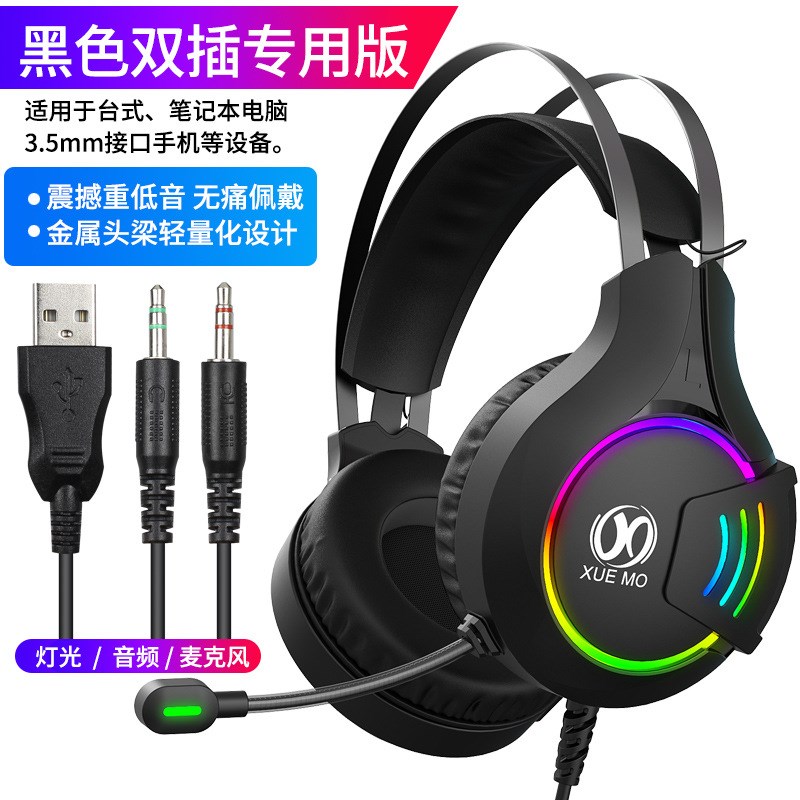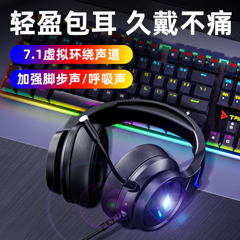 头戴式游戏电竞有线耳机电脑笔记本耳麦吃鸡听声辨位女生可爱发光
