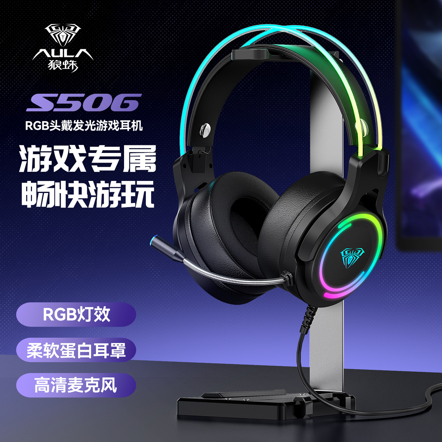 狼蛛爆款游戏耳机吃鸡有线发光电竞头戴式笔记本电脑7.1声辨耳麦