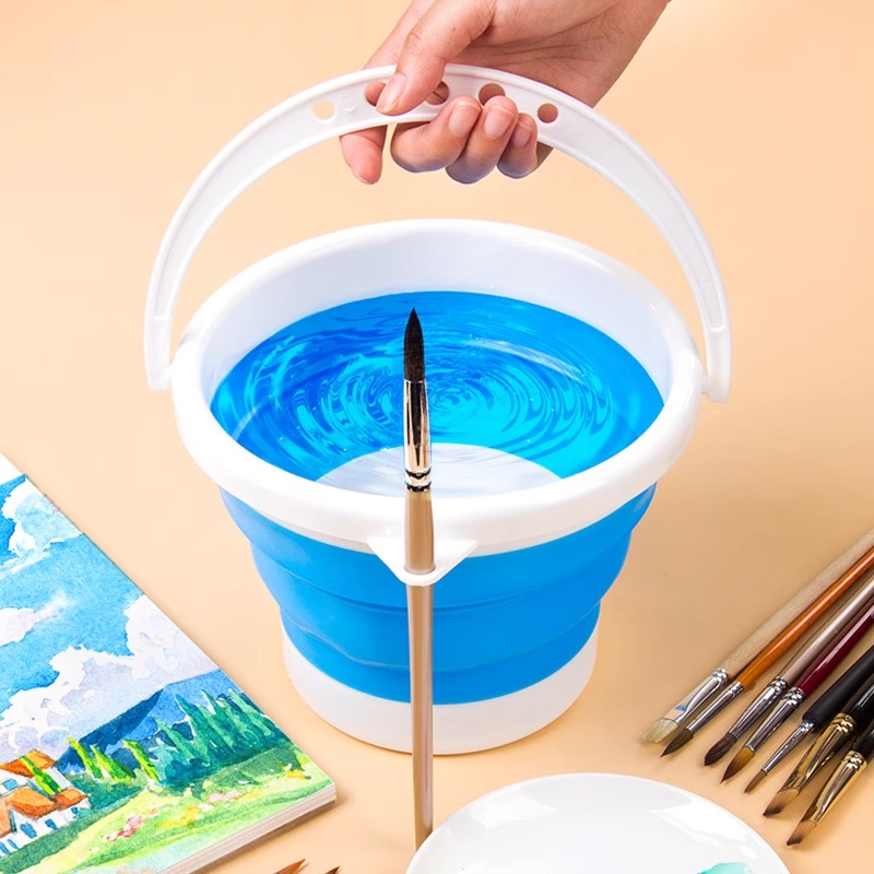 柏伦斯洗笔桶便携折叠式洗笔筒可伸缩多功能硅胶大号水桶美儿童术