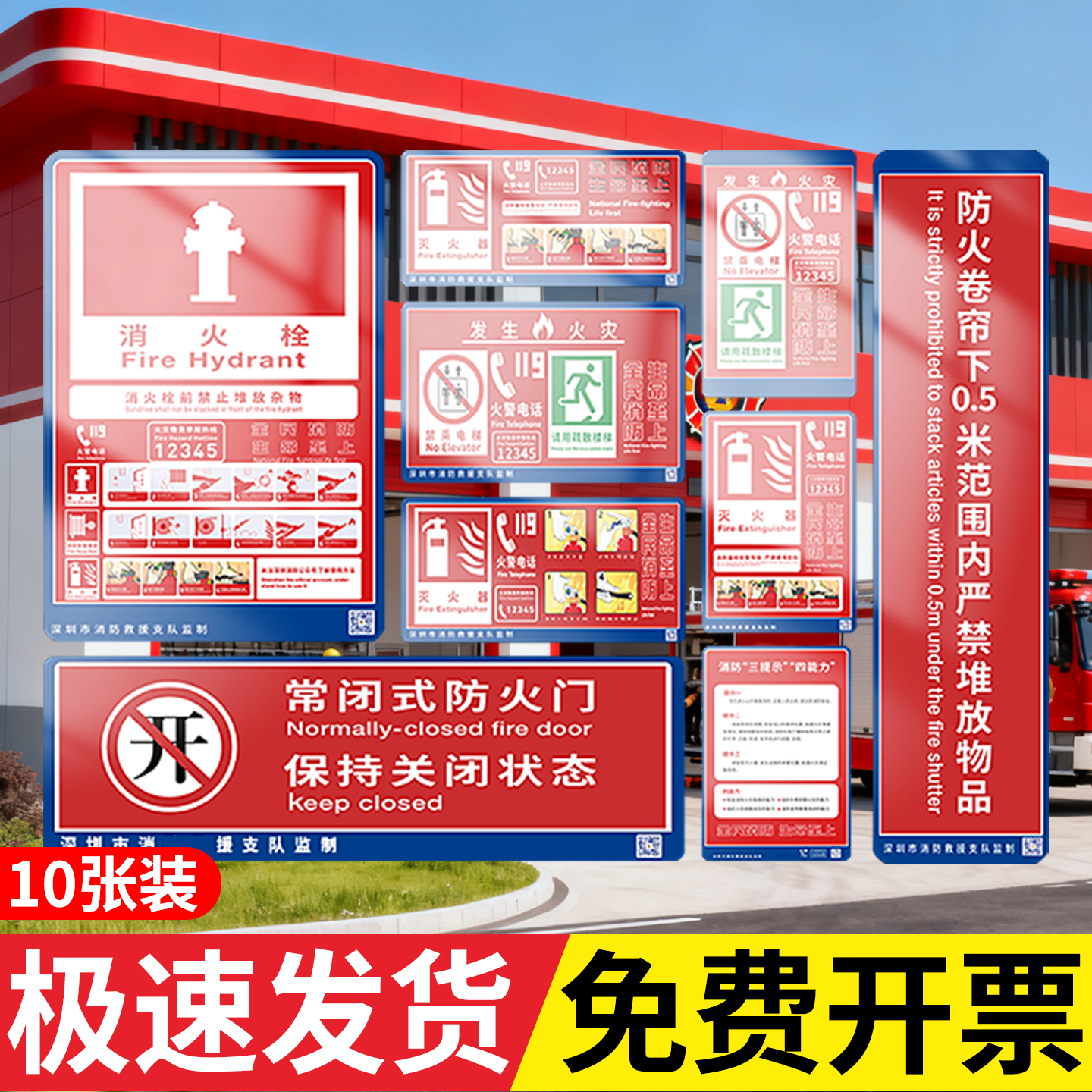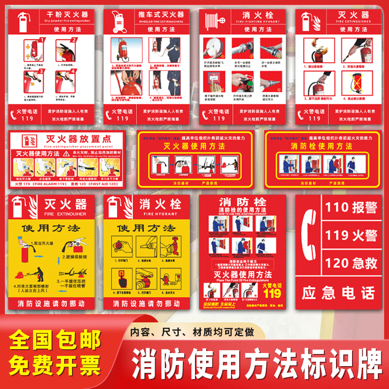 深圳市消防标识牌超市物业消防栓箱贴纸消火栓灭火器使用说明标示牌手