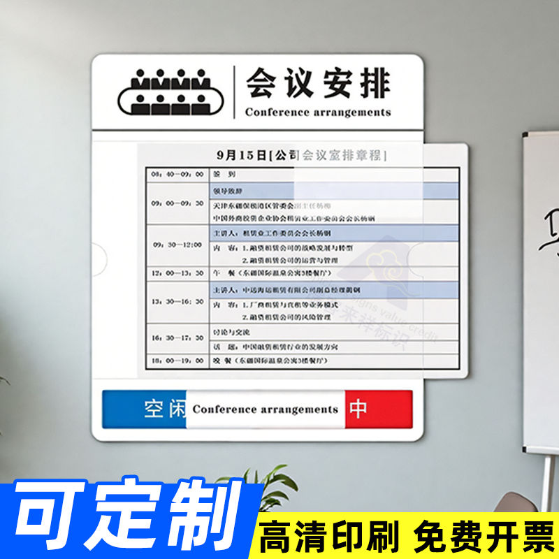 会议室使用状态牌亚克力办公室标识标牌会议房间预约时间牌公司部门开