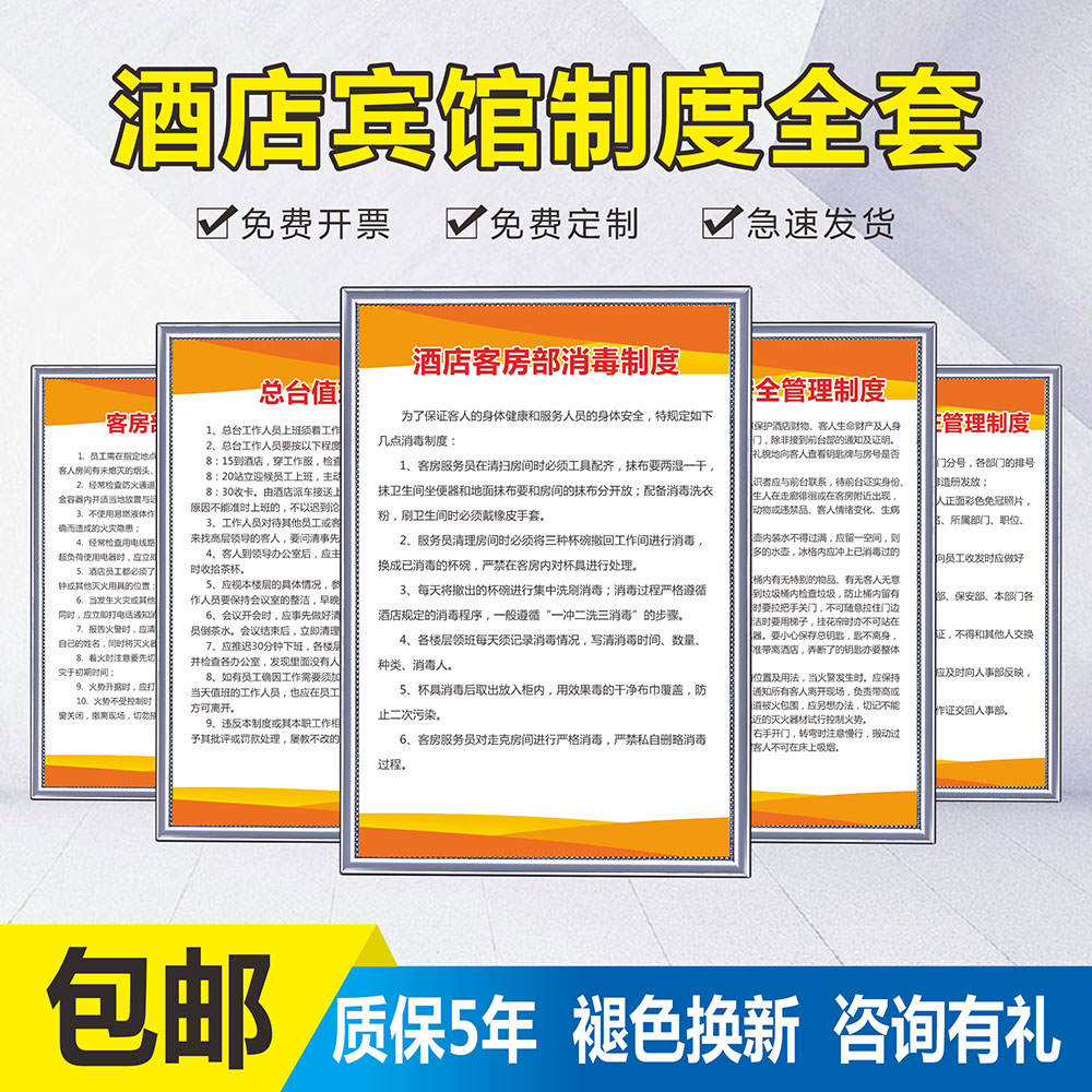 酒店宾馆管理制度牌客栈旅馆客房卫生消毒消防安全知识防火来店预订来