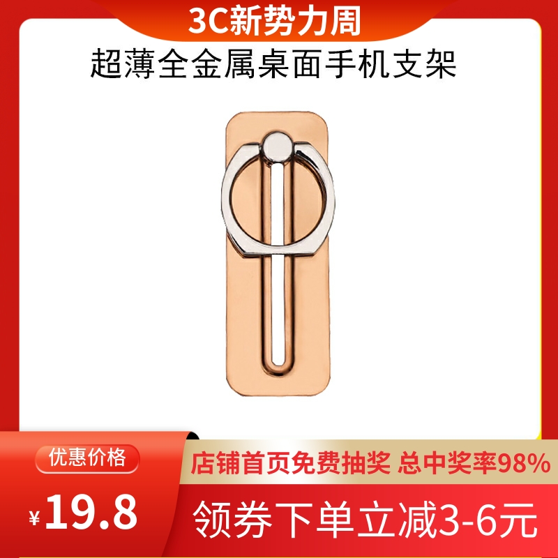 超薄手机扣环支架 滑轨桌t面手机指环男 全金属懒人支架手机指环