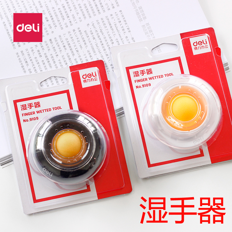 得力带盖数钱湿手器财务专用点钞缸数钱宝点钱海绵缸沾水蘸水盒创意查