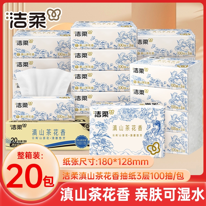 洁柔滇山茶花香抽纸100抽20包正常餐巾纸面巾纸家用擦手卫生纸巾