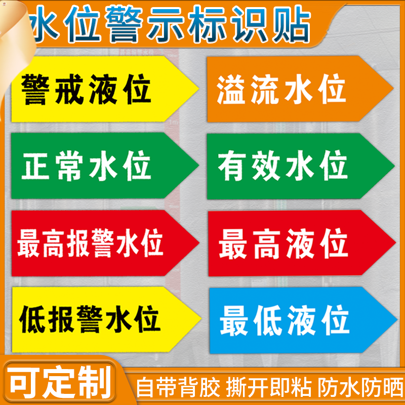 液位标识贴纸水位警戒溢流液位标识贴纸正常液位警示贴纸防水防油定制