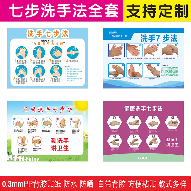 七步洗手法亚克力医院诊所七部法步骤图贴纸幼儿园儿童学校六步防水墙