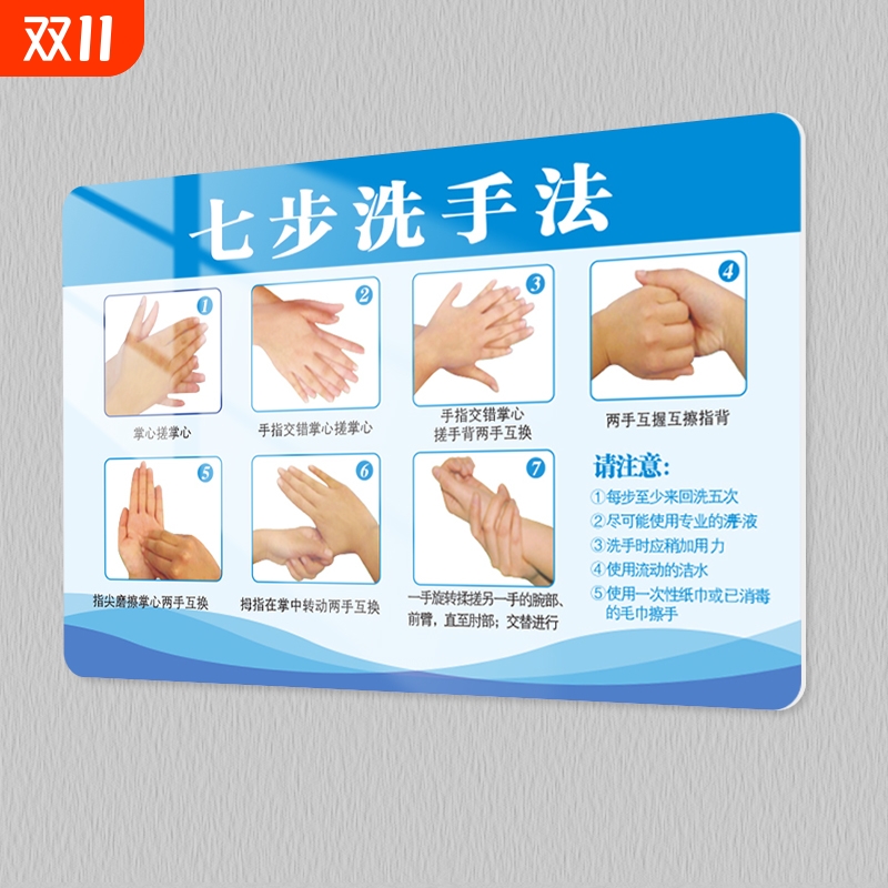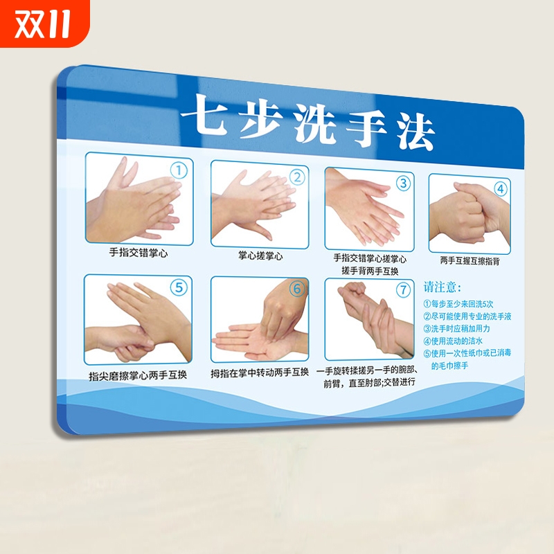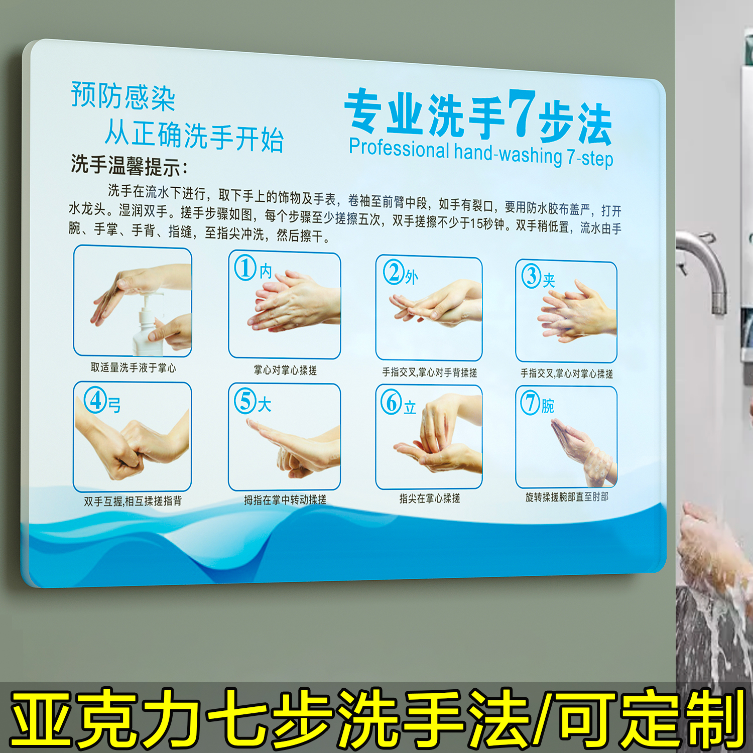 洗手间医院诊所幼儿园七步洗手法墙贴洗手消毒流程步骤示意图亚克力防