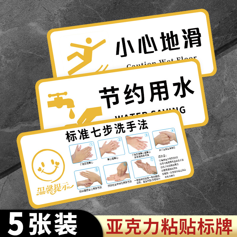 七步洗手法墙贴标识牌亚克力医院学校幼儿园洗手步骤防水提示牌请节约