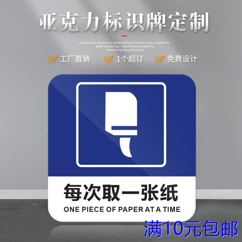 正方形每次取一张纸提示牌标牌亚克力标牌男女洗手间文明标语牌指