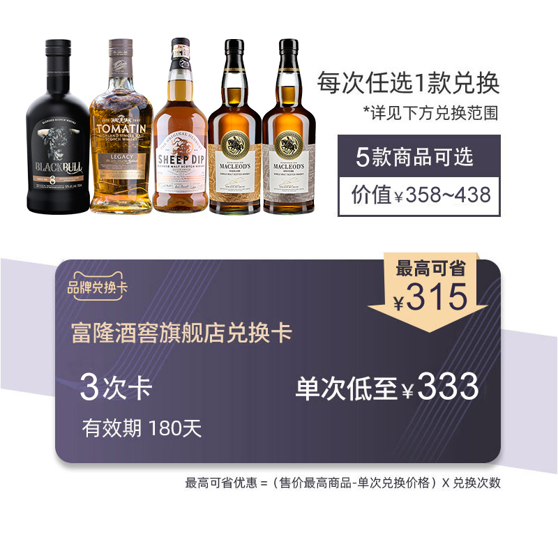 富隆酒业洋酒品牌兑换卡3次卡【5款美酒每次1瓶共任选3瓶】