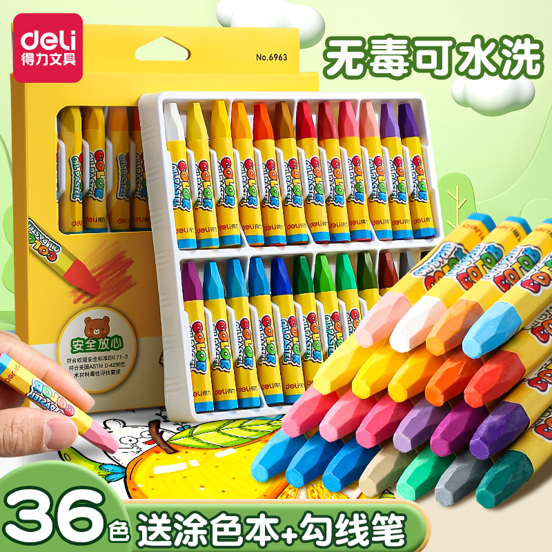 得力旋转蜡笔油画棒可水洗不脏手儿童毒无幼儿园专用画笔24色炫彩棒