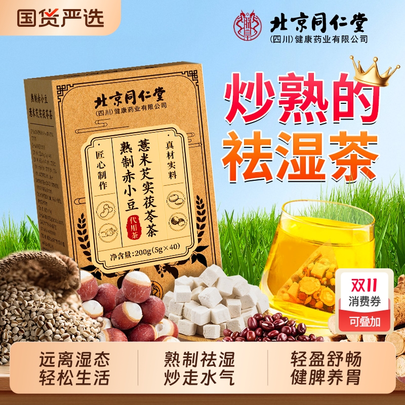 北京同仁堂炒熟的红豆薏米茶茯苓去湿气毒寒养生茶赤小豆健脾调理