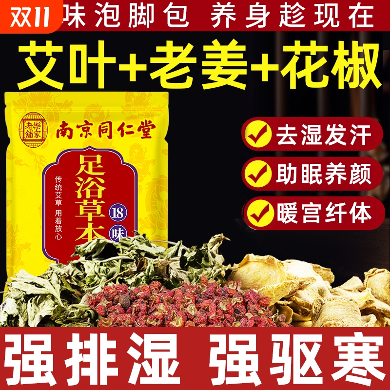 北京同仁堂泡脚的药包祛寒湿泡脚包去湿气排毒助睡眠三艾草足浴包