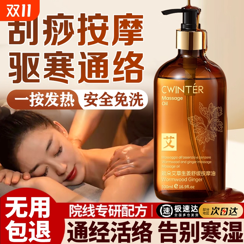 生姜艾草按摩精油全身体通经络发热开推背刮痧排毒正品官方旗舰店