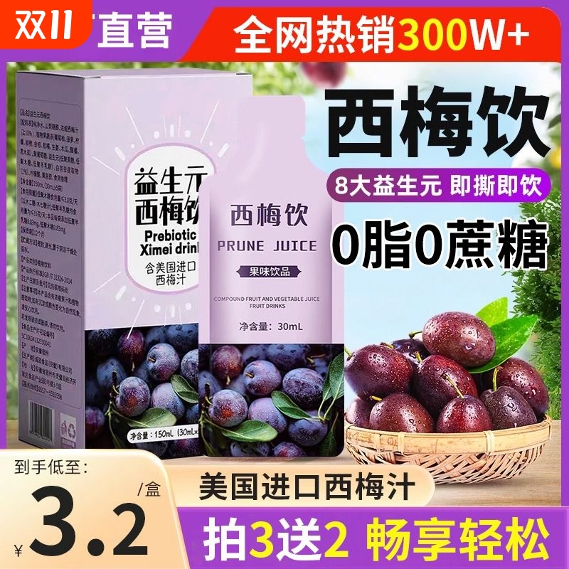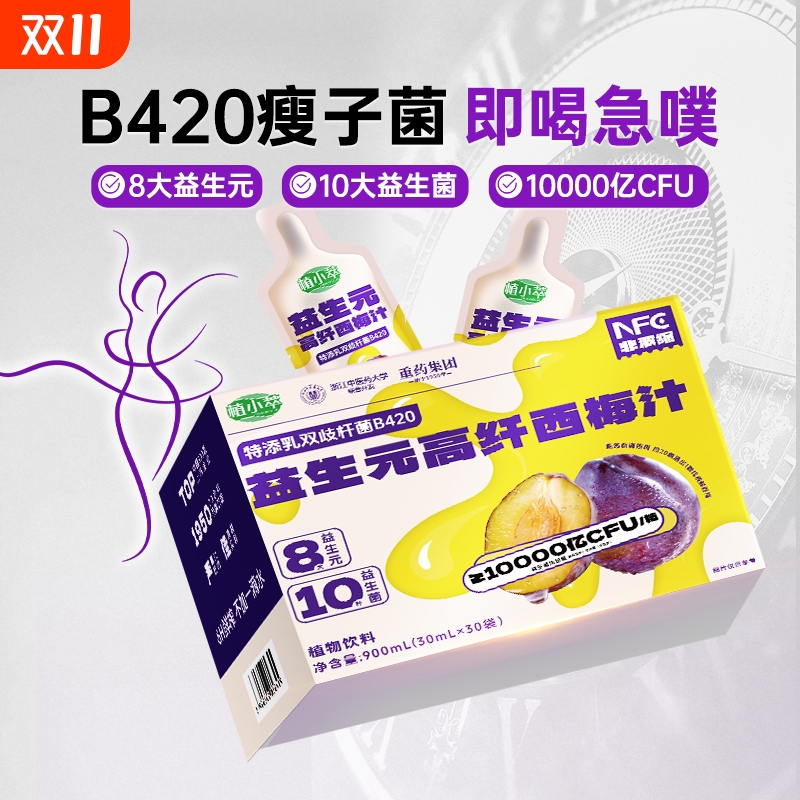 B420益生菌西梅汁纤维果饮润清肠脂减毒通排宿秘便大餐救星正品