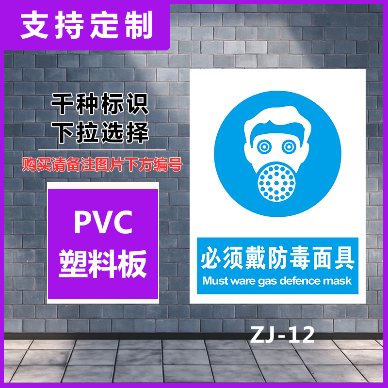 必须戴防毒面具警示标识牌工厂车间安全生产禁止吸烟严禁烟火提示标识