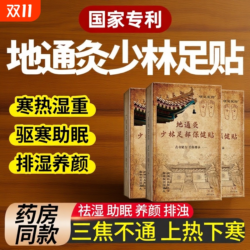地通灸少林足部保健贴诚翌堂睡眠足贴去湿气排毒排体内湿寒减碱肥
