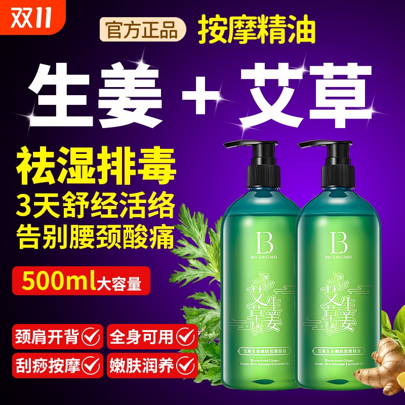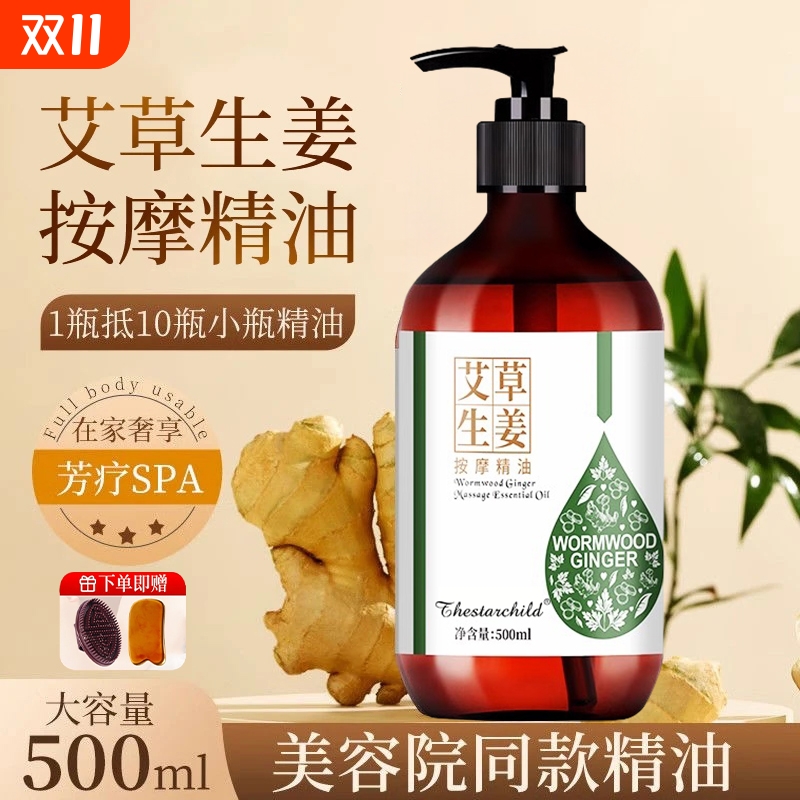 艾草生姜按摩精油全身体通经络排毒开背推拿刮痧驱寒湿紧致疏通