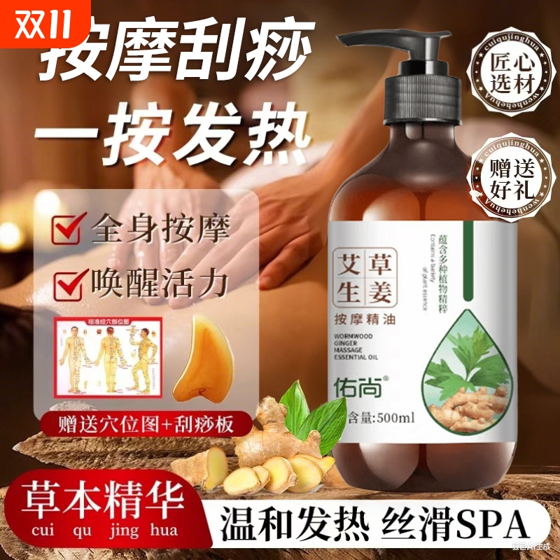 艾草生姜按摩精油摩身体全身通经络排毒开背推背刮痧发热免洗儿童