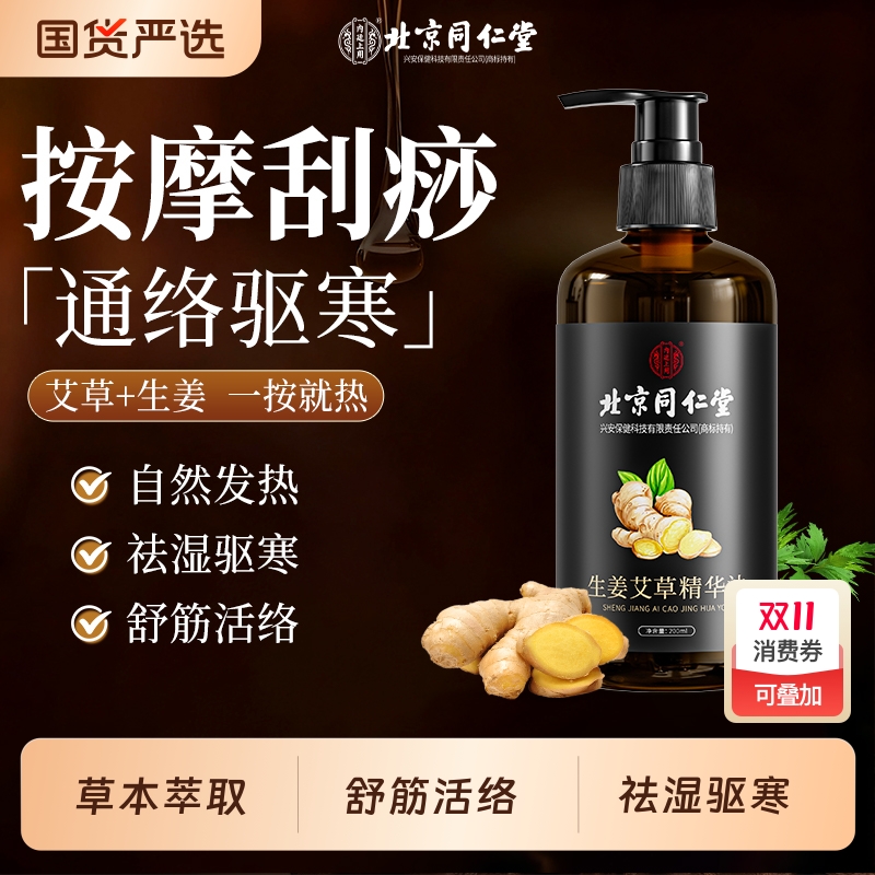 北京同仁堂艾草生姜按摩精油全身体通经络排毒刮痧发热专用按摩油