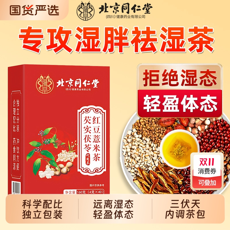 北京同仁堂红豆薏米祛排湿茶去除湿气毒官方旗舰店正品茯苓养生茶