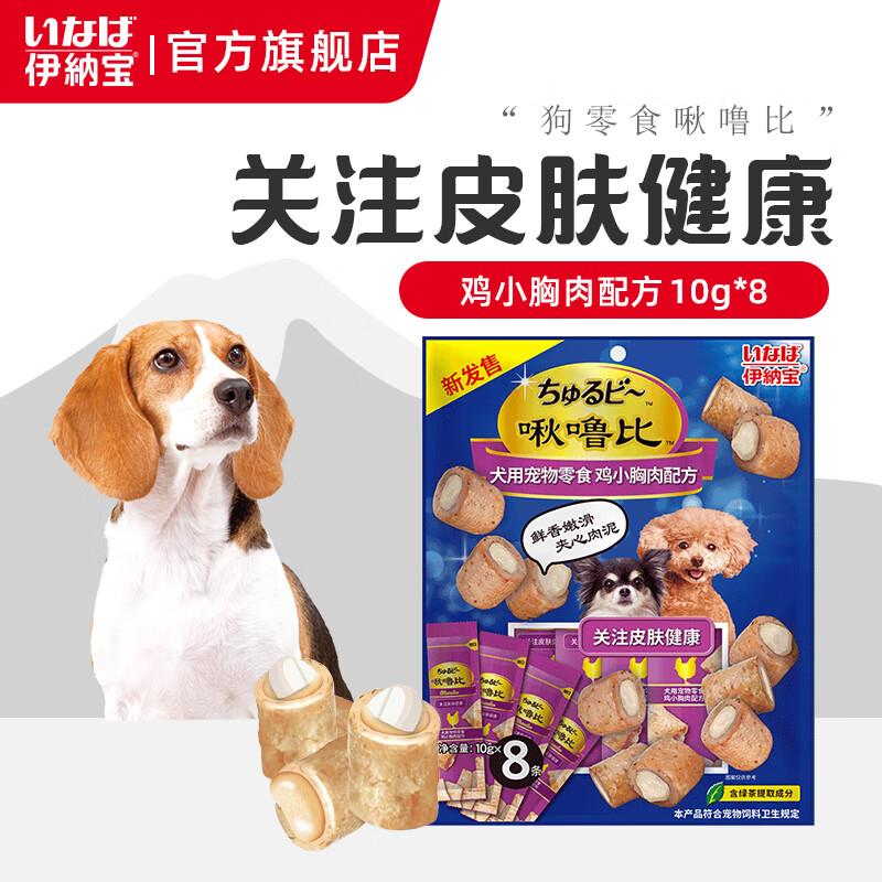伊纳宝狗狗啾噜比磨牙棒耐咬鸡小胸肉干狗零食小型犬狗狗训犬零食