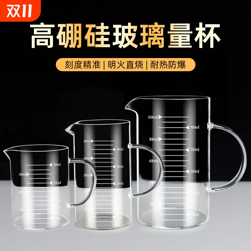 家用玻璃量杯带刻度大烧杯厨房高温加厚毫升杯子350-1000ml