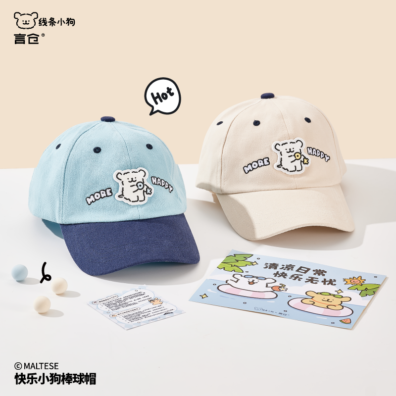 言仓线条小狗棒球帽米白色蓝色韩系氛围感百搭情侣女生生日礼物
