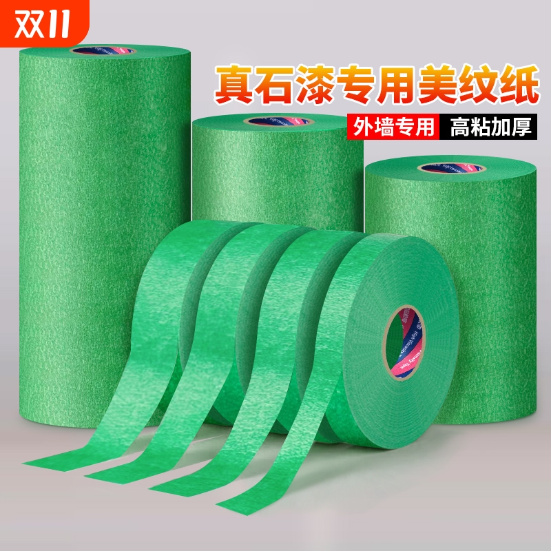 外墙专用美纹纸胶带建筑施工真石漆水包砂粗糙面喷漆遮蔽绿色不易渗透