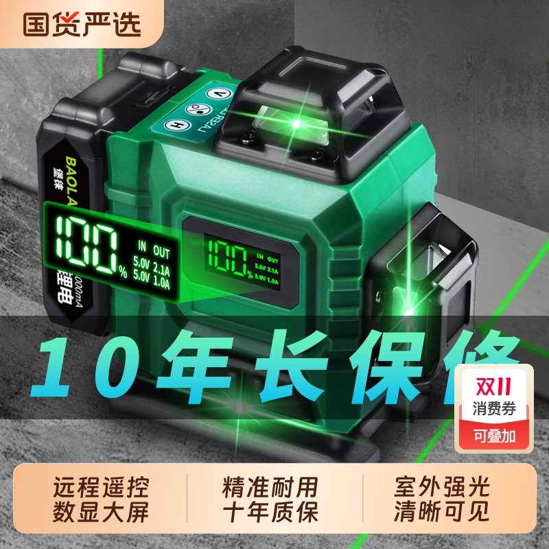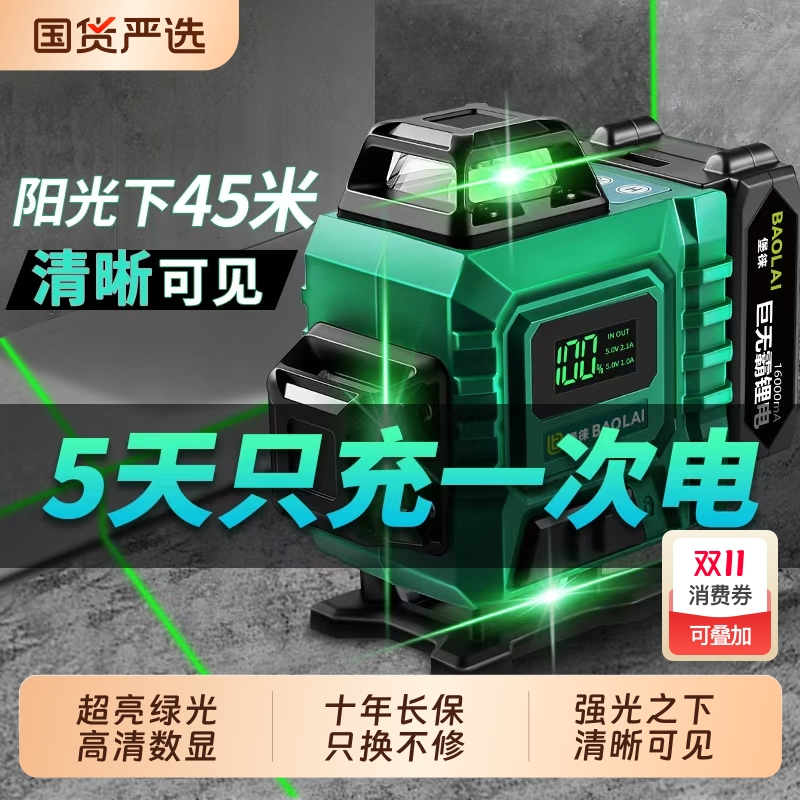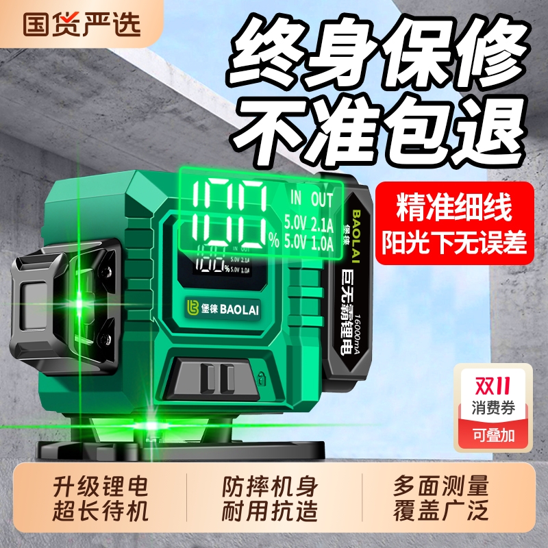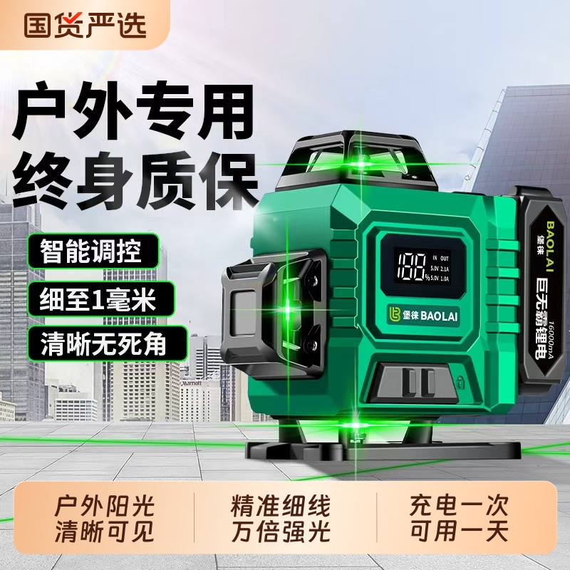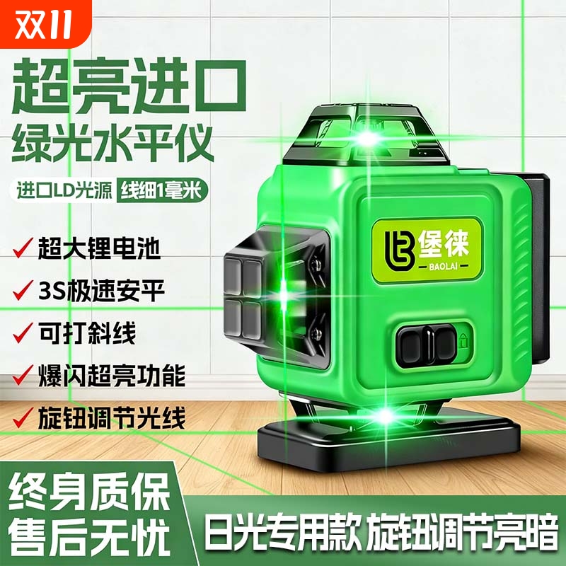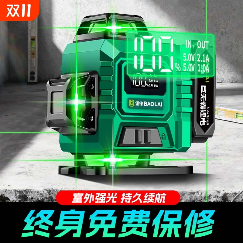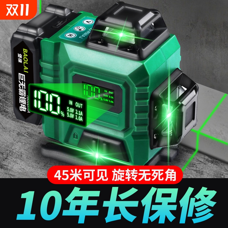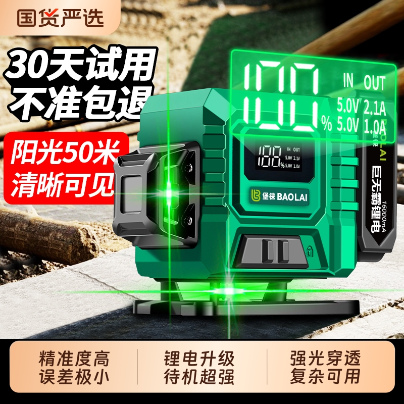堡徕12线绿光水平仪贴墙贴地高精度强光细线红外线激光投线仪绿光