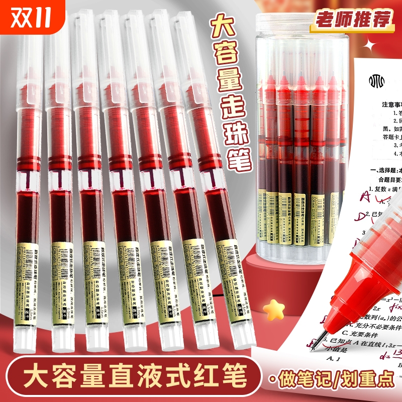 直液笔0.5mm圆珠笔红色中性走珠水笔针管办公商务学生刷题签字笔
