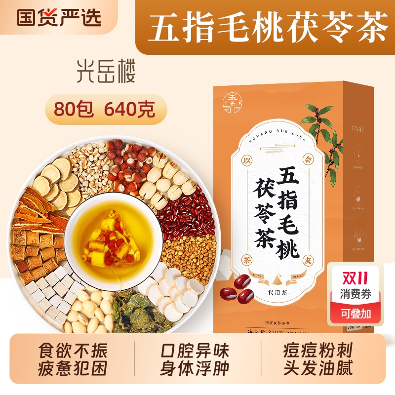 红豆五指毛桃茯苓茶无糖调理脾胃水肿祛湿茶去体内湿气