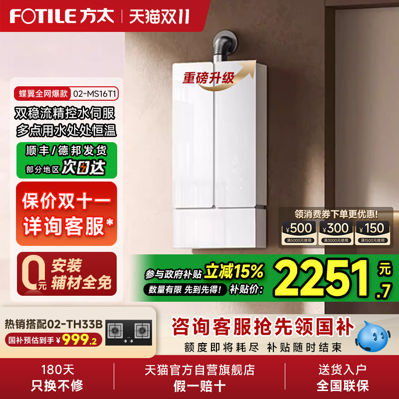 方太燃气式热水器02-MS16T1蝶翼家用天然气恒温水量伺服器官