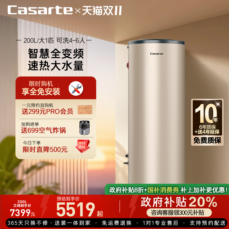 卡萨帝空气能热水器家用200升超一级全变频热泵大水量JF7