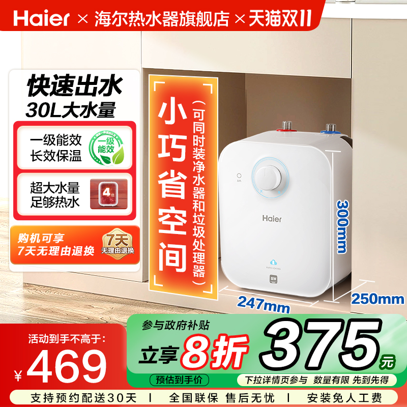 海尔官方电热水器60升双胆扁桶热水器净水洗储水式超大水量BK7W