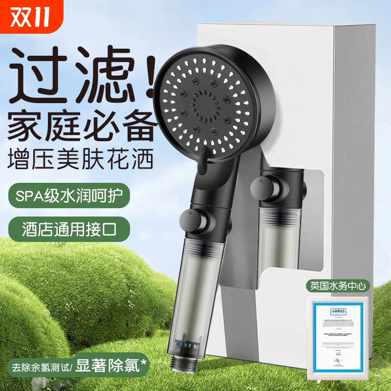 增压花洒喷头爆款家用超强大水量浴室涡轮过滤免打孔枪灰色热水器