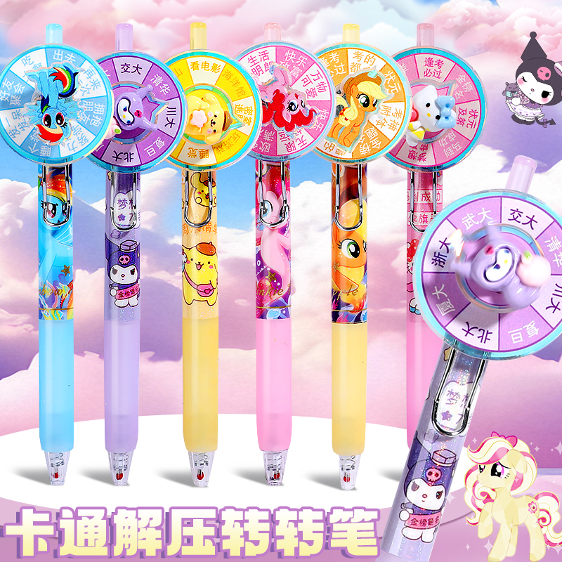 可爱小马幸运转盘转转笔中性笔解压高颜值按动笔st头求签祈愿网红