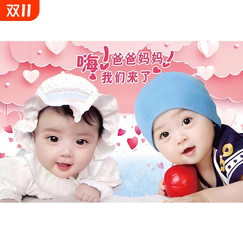 龙凤胎宝宝画报墙贴求送子图片好助备孕可爱男女宝双胞教照片海报