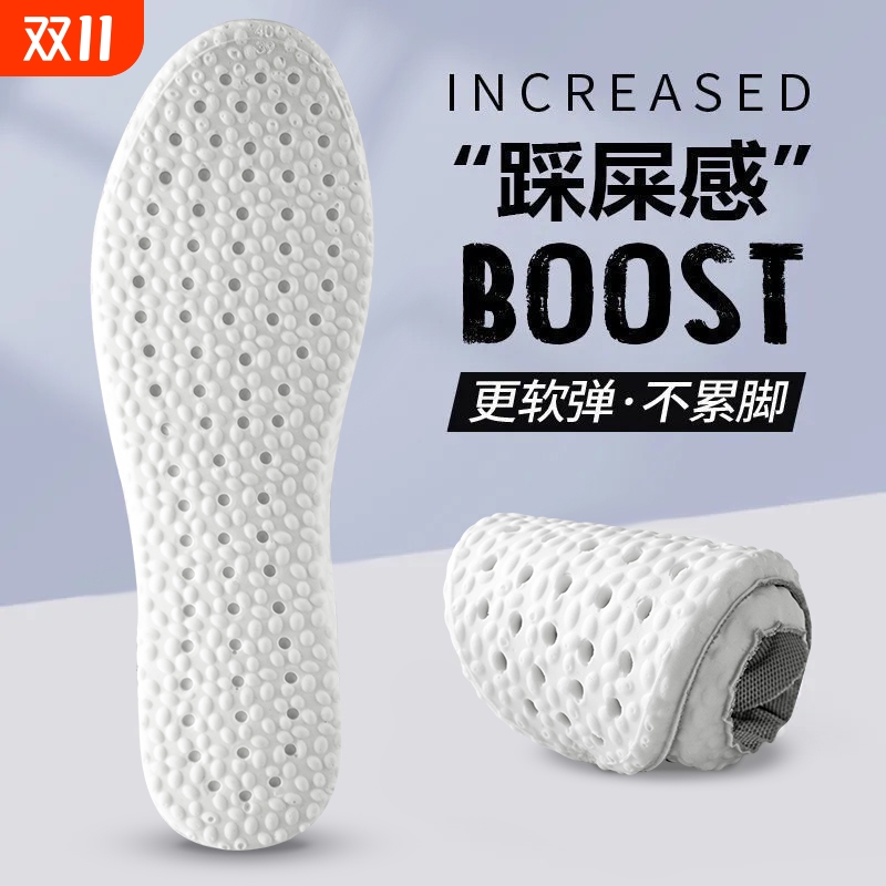 踩屎感运动鞋垫男女军训足弓减震吸汗防臭爆米花脚跟裁剪足跟后跟