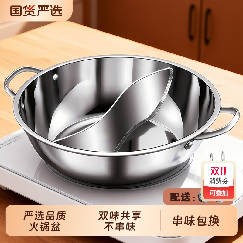 鸳鸯锅火锅盆加厚电磁炉专用涮涮锅大容量厨房不锈钢火锅清汤锅