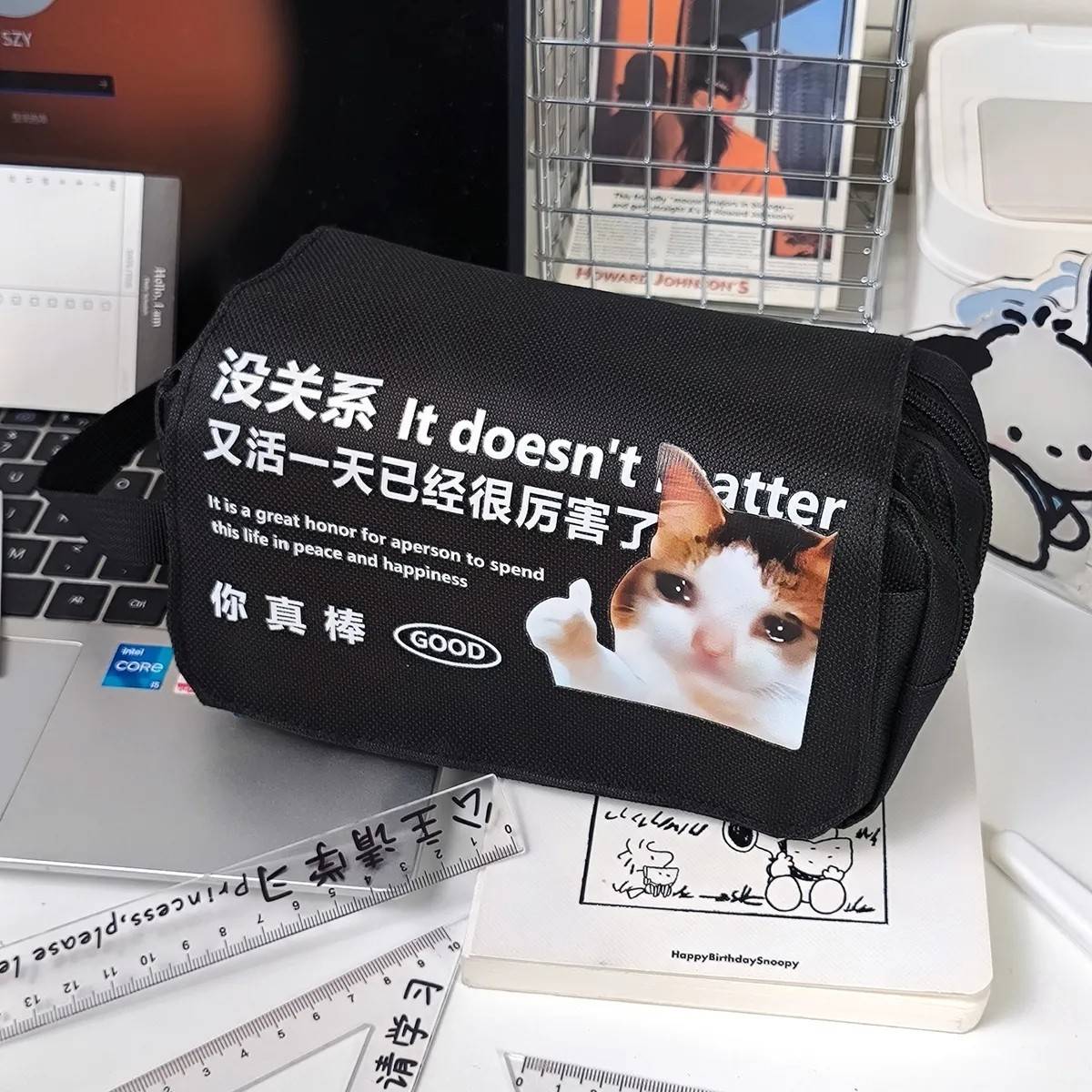 没关系又活了一天表情包搞笑笔袋黑男女学生小学初中文具盒大容量