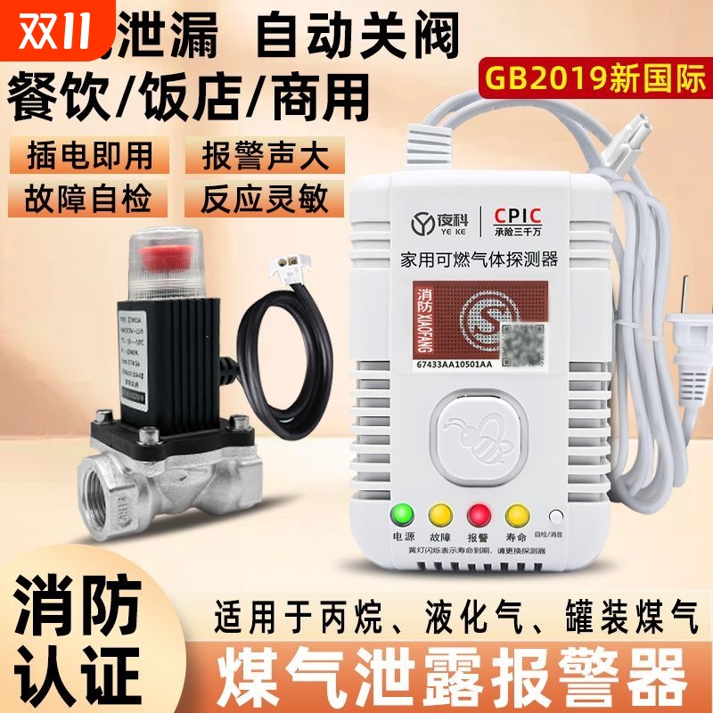 燃气泄露报警器家用厨房煤气天然气自动切断阀警报器无线气体探测