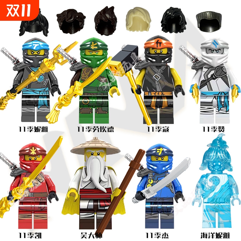 海洋妮雅战斗服第11季吴大师杰幻影忍者黄金武器拼装积木玩具发型