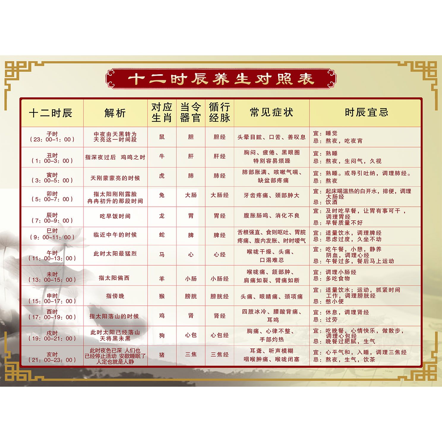 十二时辰养生对照表中医养生馆文化挂图子午流注穴位图装饰贴纸