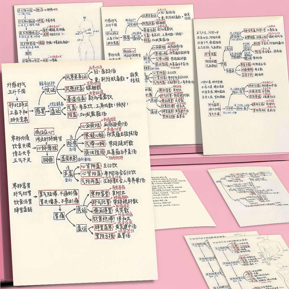 中医养生十四经脉流注顺序科普医学生手写笔记重点汇总学习贴纸