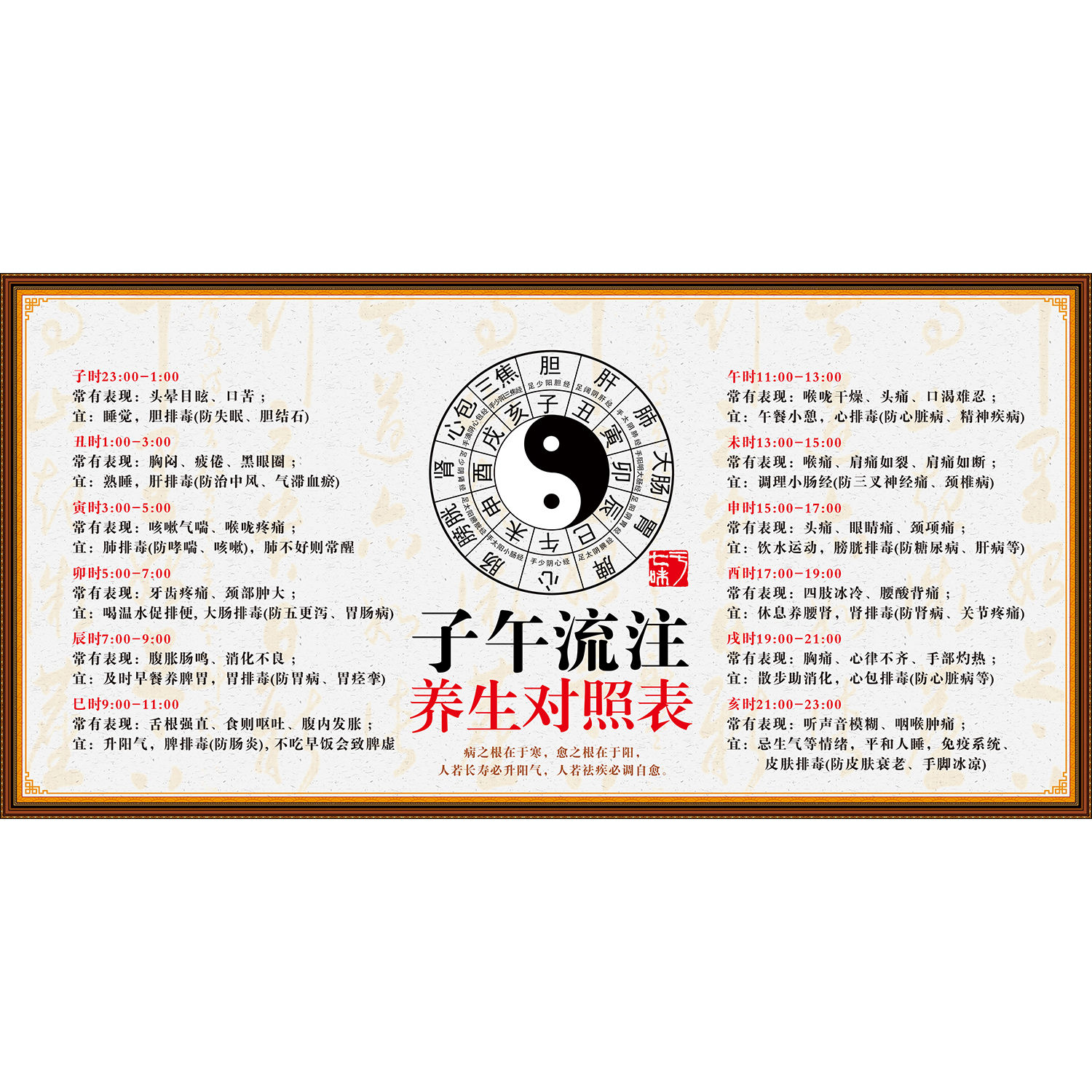 子午流注养生对照表 中医养生文化知识海报挂图 理疗养身馆装饰画