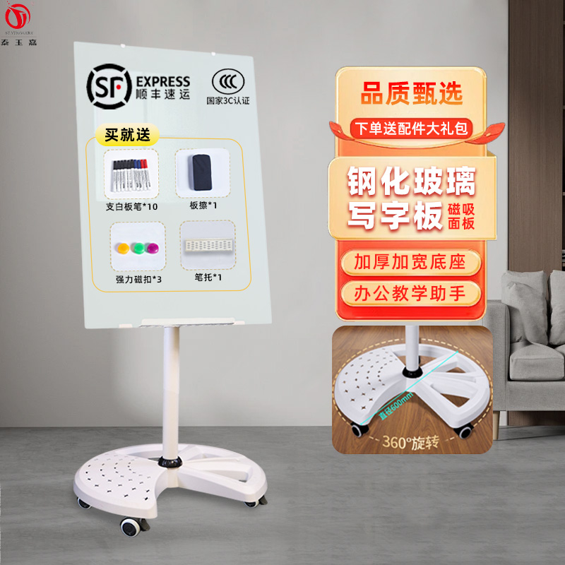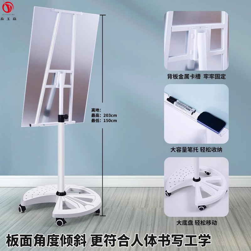 磁性钢化玻璃白板写字板磁吸淡蓝玻璃板立式升降竖版告示板告示架
